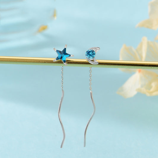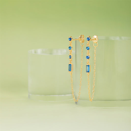 Blue Diamond Square Chain 925 Sterling Silver Earrings