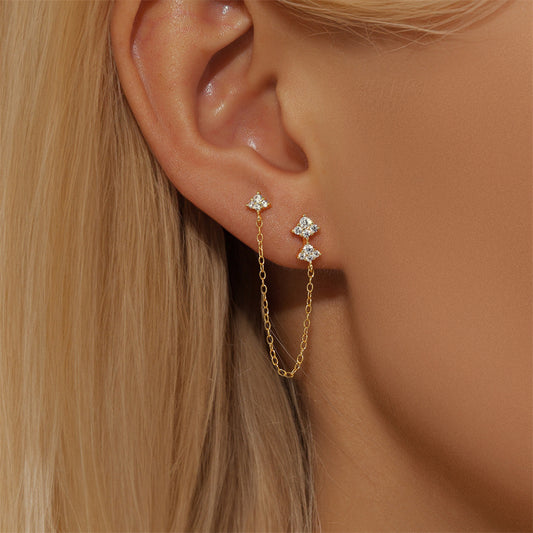 Clover Kisses Stud Earrings ( S925 Sterling Silver )
