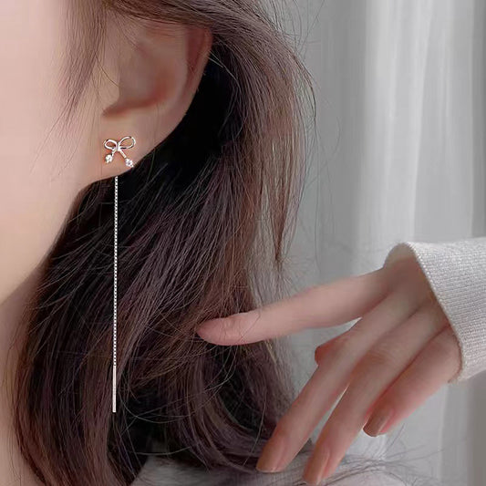 Bow Platinum Diamond 925 Sterling Silver Earrings
