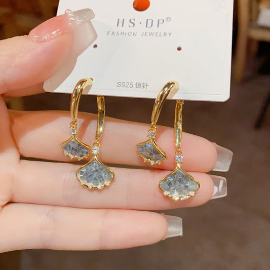 Blue Ginkgo Real Gold Plating S925 Earrings