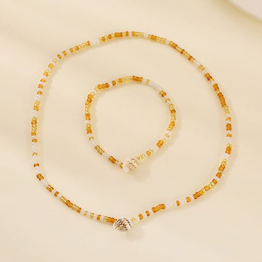 Rice Bead Conch Ocean Necklace & Bracelet Set
