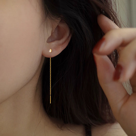 Long Tassel Hoop 925 Sterling Silver Earrings