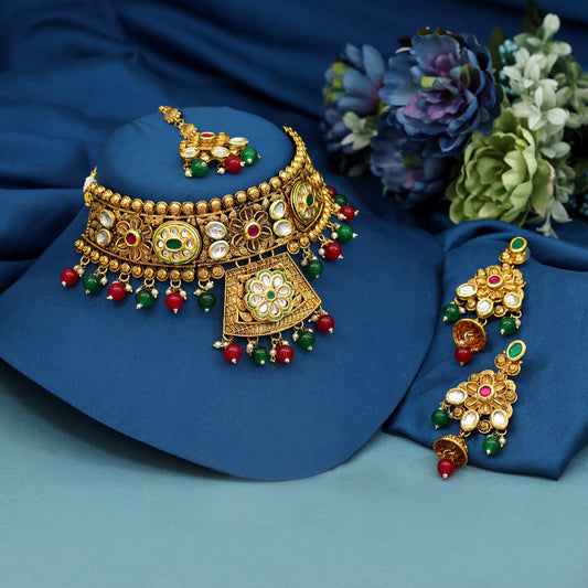 Shreeflora Temple Rajwadi Necklace Set