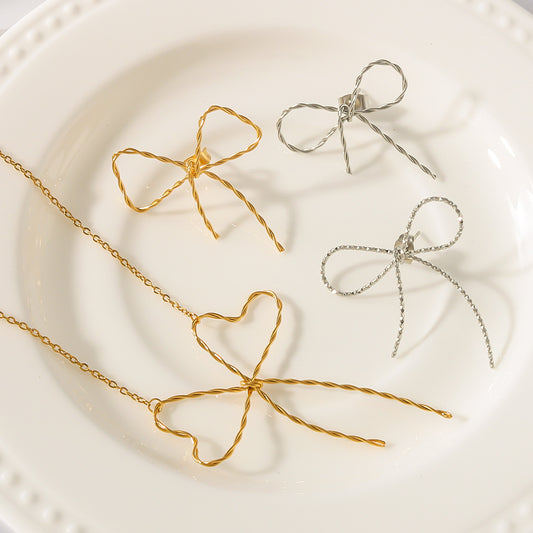 Bow Platinum Diamond 925 Sterling Silver Earrings