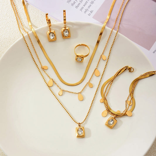 Diamond Earrings Bracelet Ring 5-piece Necklace Set