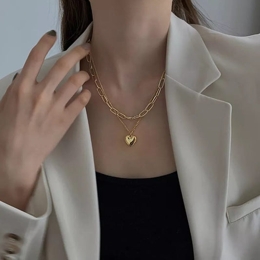 क्यूबिन चेन लेयर्ड हार्ट नेकपीस