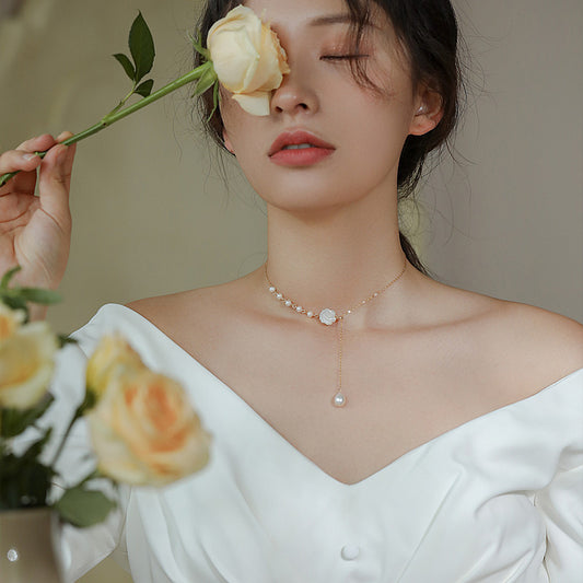 बिक्रीमोती और सफेद गुलाब का नेकपीस